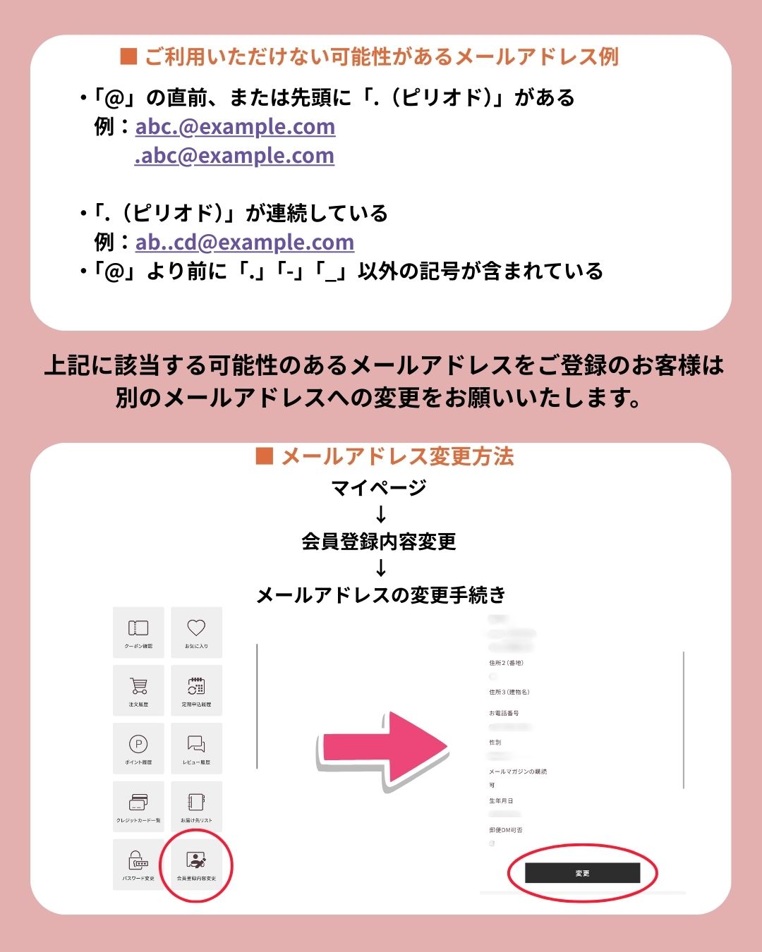 クレジットカードご利用の「メールアドレス変更のお願い」について