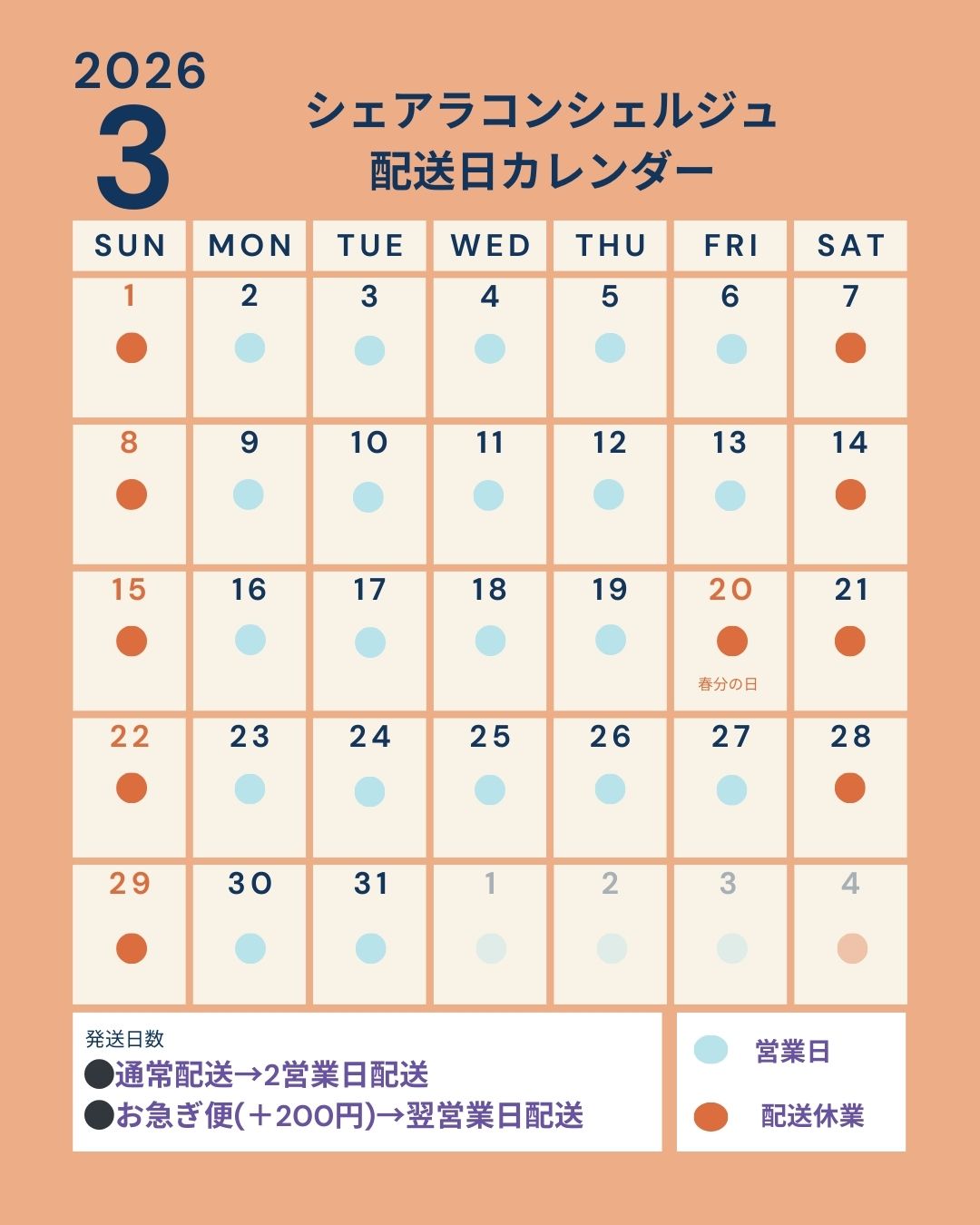 3月の配送スケジュールについてご案内いたします。